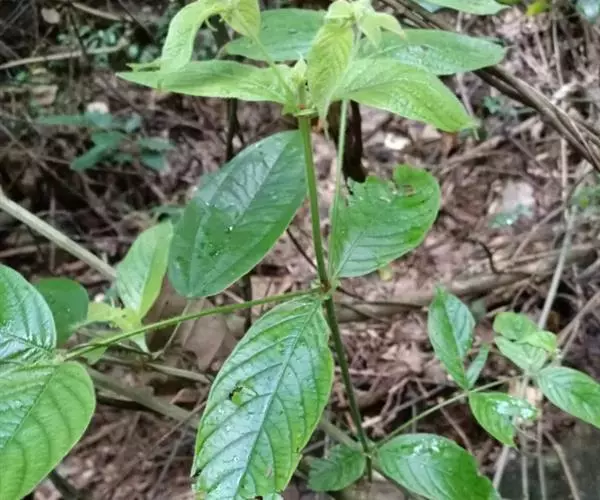 叶革质,卵形或椭圆形,长8-12厘米, 毛钩藤 宽5-7厘米,顶端渐尖,基部钝,上面稍粗糙,被稀疏硬毛,下面被稀疏或稠密糙伏毛。侧脉7-10对,下面具糙伏毛,脉腋窝陷有粘腋毛;叶柄长3-10毫米,有毛;托叶阔卵形,深2裂至少达2/3,外面被疏散长毛,内面无毛,基部有粘液毛,裂片卵形,有时具长渐尖的顶部。头状花序不计花冠直径20-25毫米,单生叶腋,总花梗具一节,苞片长10毫米,或成单聚伞状排列,总花梗腋生,长2.5-5厘米;小苞片线形至匙形;花近无梗,花萼管长2毫米,外面密被短柔毛,萼裂片线状长圆形,密被毛;花冠淡黄或淡红色,花冠管长7-10毫米,外面有短柔毛,花冠裂片长圆形,外面有密毛;花柱伸出冠喉外;柱头长圆状棒形。果序直径45-50毫米;小蒴果纺锤形,长10-13毫米,有短柔毛。