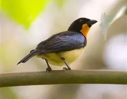 黄腹山雀是雀形目山雀科山雀属鸟类。虹膜褐色或暗褐色;嘴蓝黑色或灰蓝黑色;头、喉胸斑黑色,…