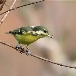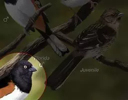雌鸟和雄鸟相似,但腹无黑斑,上体黑色部分多为暗橄榄绿色。