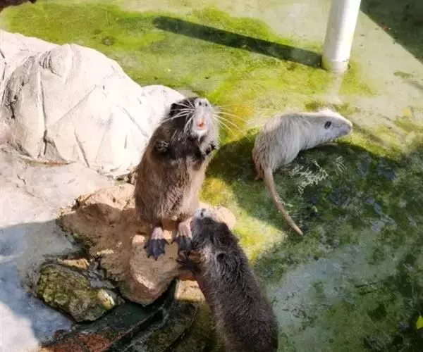仔鼠出生时只有0.15~0.25千克,出生时牙齿齐全,几小时以后就会吃食,并能下水玩耍。仔鼠发育很快,10日龄可达0.35~0.38千克,20日龄可达0.42~0.43千克,30日龄达0.6~0.65千克,40日龄达0.9~1.0千克。此期生长需要较多的无机元素和大量蛋白质、各种维生素,因此,除保证母乳外。日粮中应适当加喂奶类、骨粉、豆粉、鱼粉和各种维生素,保证有青绿饲料让其自由采食。精料供给要定时定量,否则易造成消化不良,反而影响发育。50日龄左右可以断乳分窝,供给全价营养、易消化的饲料。