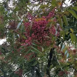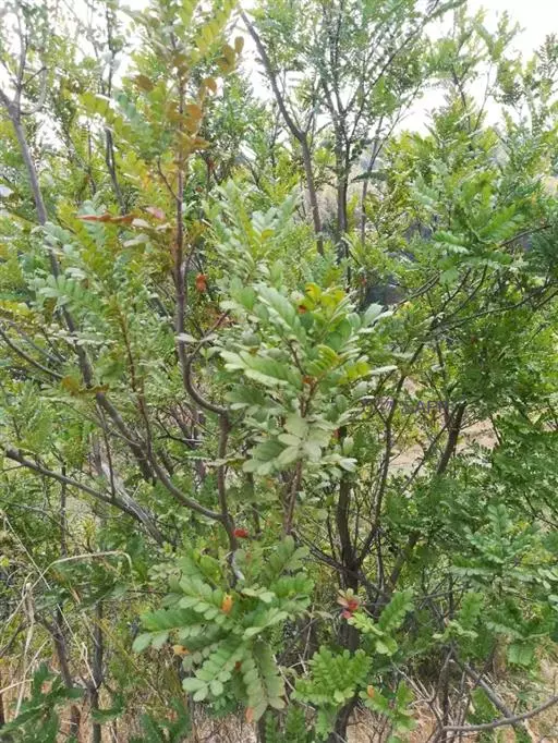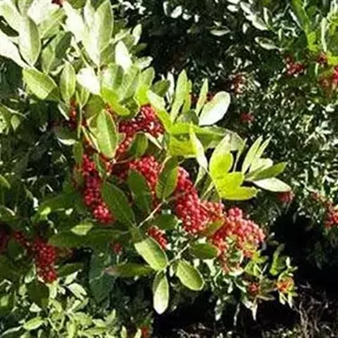清香木(学名:Pistacia weinmannifolia J. Poisson ex Franch.)漆树科灌木或小乔木,高2-8米,稀达10-15米;树皮灰色,小枝具棕色皮孔,幼枝被灰黄色微柔毛。小叶叶柄被微柔毛;革质,长圆形或倒卵状长圆形,较小;小叶柄极短。花序腋生,与叶同出,被黄棕色柔毛和红色腺毛;花小,紫红色,无梗,苞片卵圆形,外面被棕色柔毛,雄花、长圆形或长圆状披针形,膜质,半透明,花丝极短,花药长圆形,雌花无毛,花柱极短,柱头外弯。核果球形,成熟时红色,先端细尖。