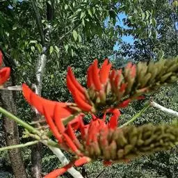 刺桐,是豆科刺桐属乔木植物。树皮灰褐色;分枝有圆锥形黑色皮刺;叶柄无毛,无刺;花密集,…