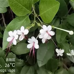 臭茉莉唇是形科大青属植物,臭茉莉体被毛较密,伞房状聚伞花序较密集,萼裂片披针形,花冠白色或淡红色,…