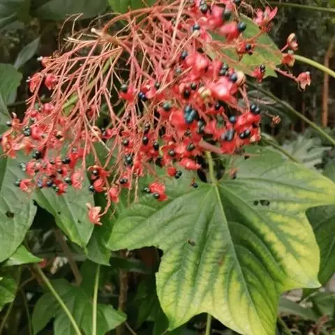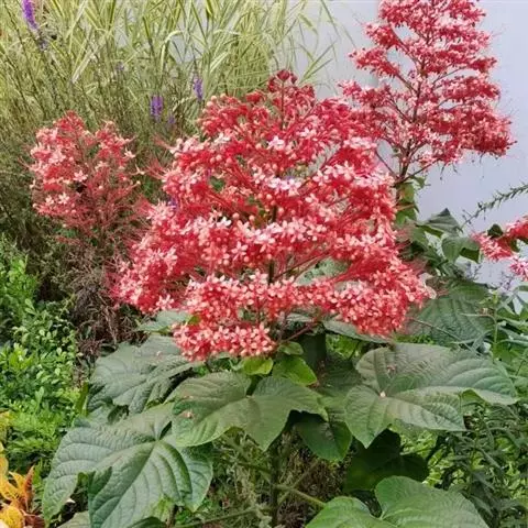 烟火树 Merr.)是唇形科、大青属常绿灌木或小乔木,株高可达4米。幼枝方形,墨绿色。叶对生,…