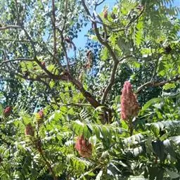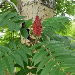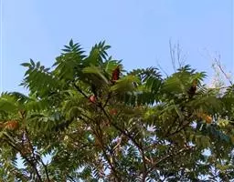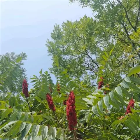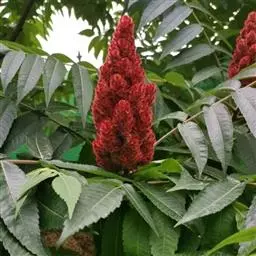 火炬树是漆树科盐麸木属落叶灌木或小乔木;株高,树形不整齐;小枝粗壮,红褐色,密生绒毛;叶轴无翅,…