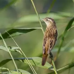 大苇莺:属小型鸟类,雌雄两性羽色相似。眉纹淡棕黄色;眼褐色;翅褐色具淡棕色的边缘;尾羽亦褐色,…