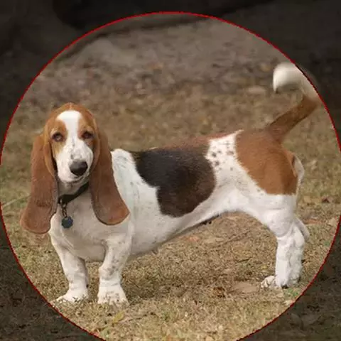 尾巴:尾长,逐渐变细,夹在两后腿之间时贴于髋骨。当犬运动时,尾巴自然下垂,向上轻微弯曲,尾应不高过背部。