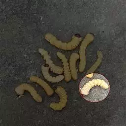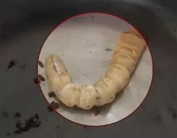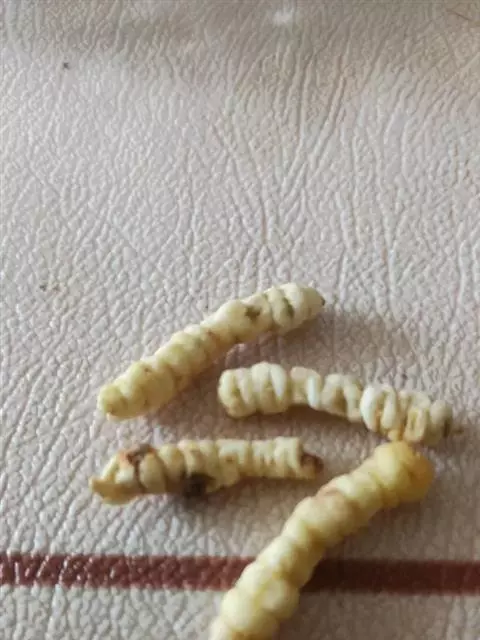 斗米虫为锈色粒肩天牛的幼虫,锈色粒肩天牛主要危害槐树Sophora japonica,…