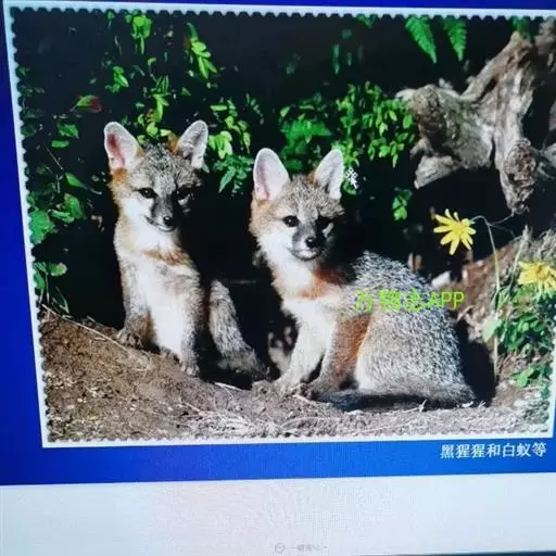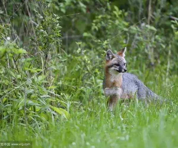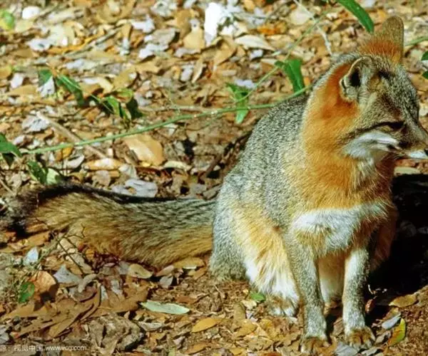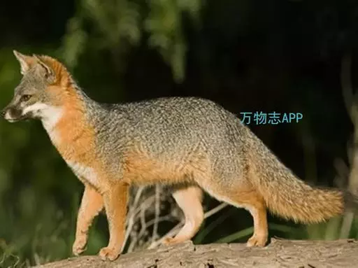 灰狐(学名:Urocyon cinereoargenteus):体长76-112.5厘米,肩高约38厘米,尾长27.5至44.3厘米;雄性体重3600-7000克,雌性体重3400-5400克。最重可达9000克。从眼睛至颈部具有黑色条纹,吻鼻部较短,四肢短,足部趾垫大,爪呈弧形,体毛粗糙,上半部分为灰色,下半部分为金黄色。腹部为白色。