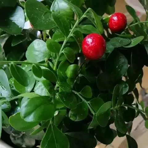• 常绿灌木或小乔木。叶椭圆形,两端尖。果扁圆形,朱红色;味甜,可食。产自中国东南部,广东地区大量盆栽。