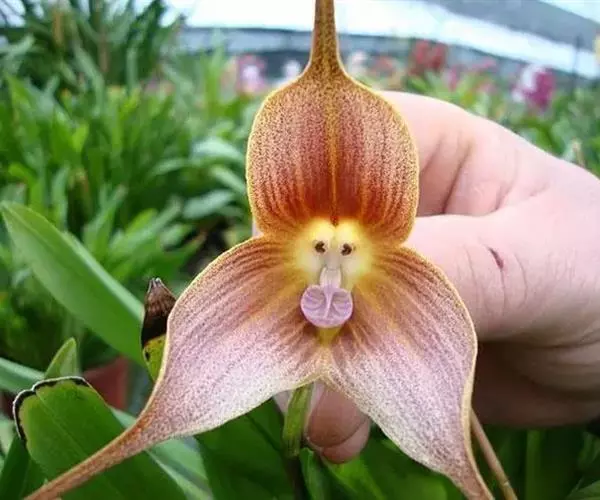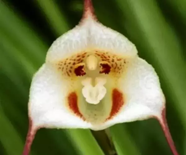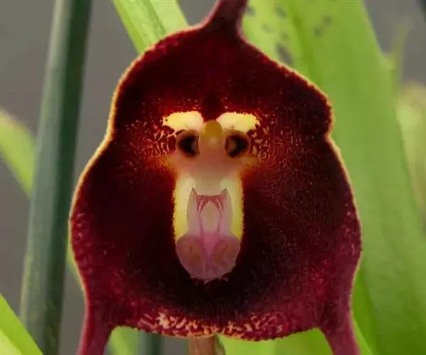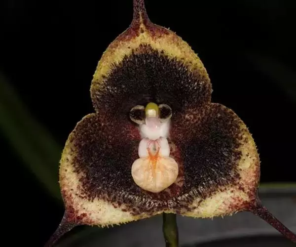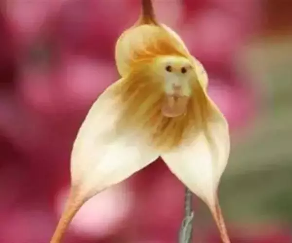 猴面小龙兰的学名“Dracula”意为“小龙”,代表这种兰花的两根长刺和两个长萼片。“Simia”则代表这种兰花的一个更引人注目的怪异特征:猴脸。