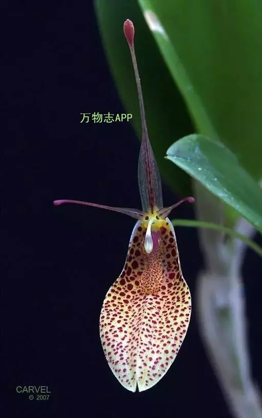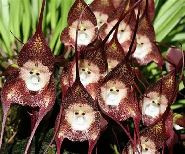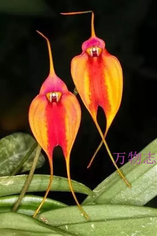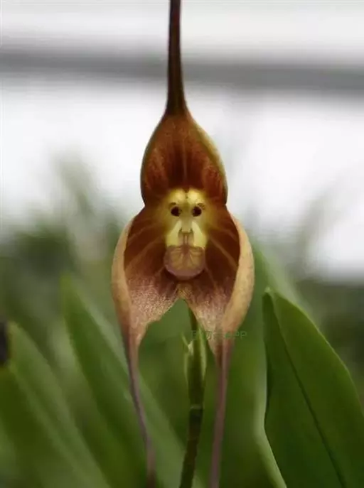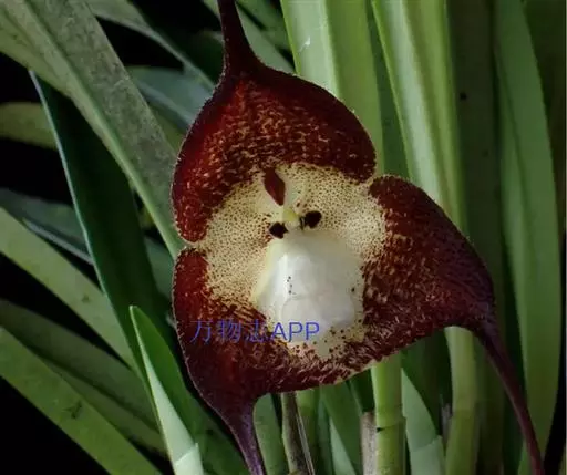 猴面小龙兰(学名:Dracula simia (Luer) Luer):兰科,小龙兰属小型附生兰,高约40厘米,茎粗壮,叶交互对生,倒卵状披针形。花对生在叶腋内,漏斗状,花梗自基部长出,种子细小。4-5月开花。
