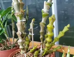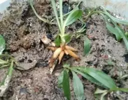⒌蘖腐病。主要发生在蘖芽上,其次是叶片。初期芽基部呈水渍状绿豆大小的病斑,高温多湿时易侵染叶面,产生暗褐色水渍状大斑块。夏季连续阴雨天,若肥水管理不当、盆土高湿、肥重时易发病。应控制土壤含水量。新芽出土4-5厘米高时,喷施0.01%硼酸液1000倍液或杀枯净,也可用农用链霉素1000倍液防治。