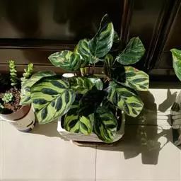 花叶竹芋:竹芋科,竹芋属匍匐状分枝草本植物,植株矮小,高可达40厘米,叶片长圆形、椭圆形至卵形,基…