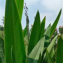 水竹芋为竹芋科多年生草本植物,植株高可达2米。叶互生,叶片卵形,叶色青绿,叶缘紫色,上被白粉,叶片…