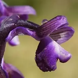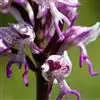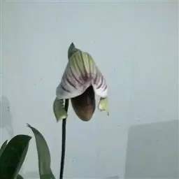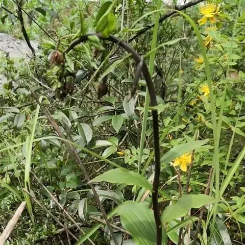 花葶长达1米,下部具数枚筒状鞘;总状花序短,具约10朵花;花苞片紫色,卵形,长约2厘米,向下反卷;花梗和子房紫色,比花苞片长;花紫色;中萼片卵形,凹陷,长1.5-1.7厘米,宽9毫米,先端锐尖;侧萼片斜卵形,与中萼片等大。