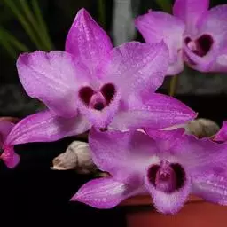 盆裁3年以上的植株或部分秋石斛茎的顶部或基部长有小植株时,可以进行切芽繁殖。选择具有3-4片叶,2-3条根,根长4-5厘米的小植株,从母株上切下,用草木灰或70%的代森锰锌处理伤口,将苗植入盆中即可。汪意要浅植。栽培2年后一般可开花成为商品花。