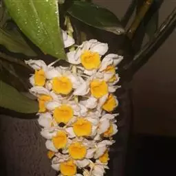 束花石斛是兰科石斛属植物。茎粗厚,肉质,下垂或弯垂,圆柱形,不分枝,具多节。叶二列,互生于整个茎上,…