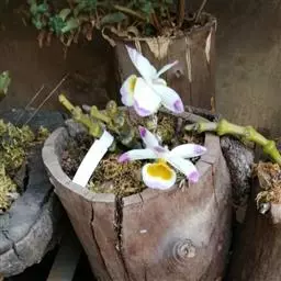 通常选用四壁多孔的塑料或陶瓷花盆,用碳根、泥炭藓、树皮块、木炭块等作盆栽材料。根据兰苗的大小,选择不同规格的花盆,但不宜用大盆栽小苗口上述栽好材料在使用前必需在清水中浸泡1天以上备用。盆底要多垫大瓦片或碎砖块,深度至盆底约1/3处,然后将兰苗放于盆中央,并在一旁插一细竹竿以固定兰苗,再填入其他栽培材料,注意根与根之间用材料隔开。