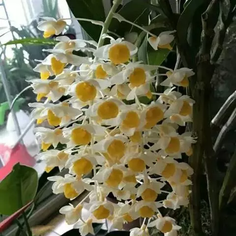 美花石斛是兰科石斛属多年生草本。茎柔弱,斜立或下垂,呈细圆柱形,有时分枝;叶互生于茎上,…