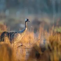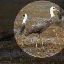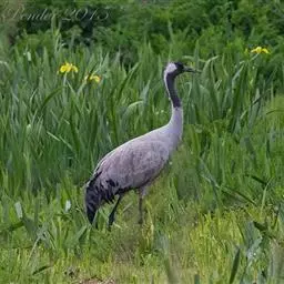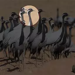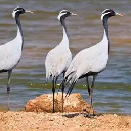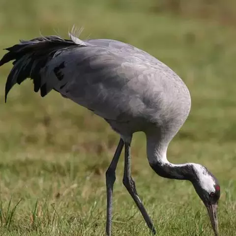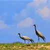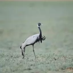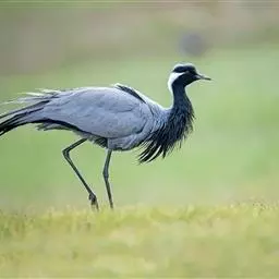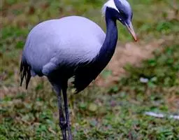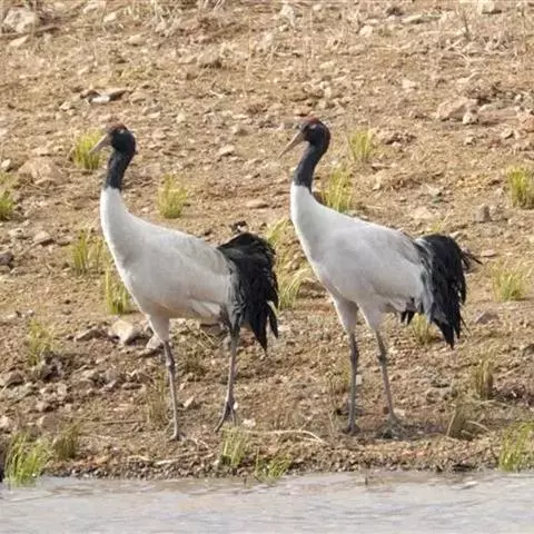蓑羽鹤大型涉禽,体长68~92厘米,是鹤类中个体最小者。通体蓝灰色,眼先、头侧、喉和前颈黑色,…