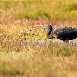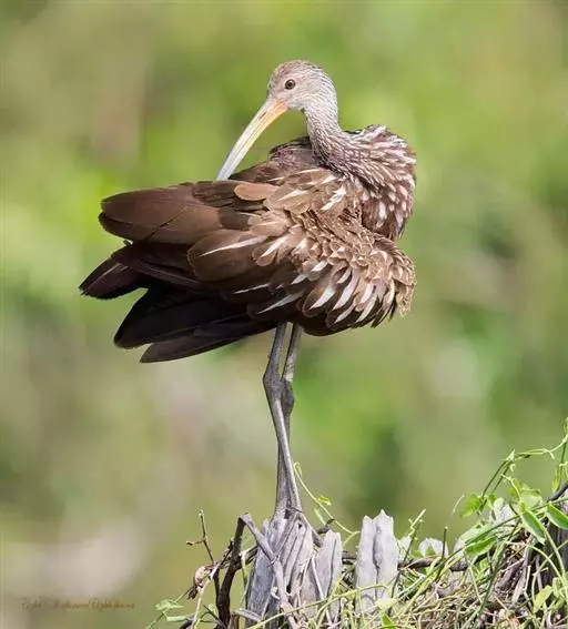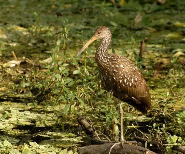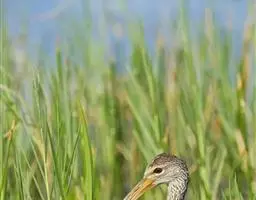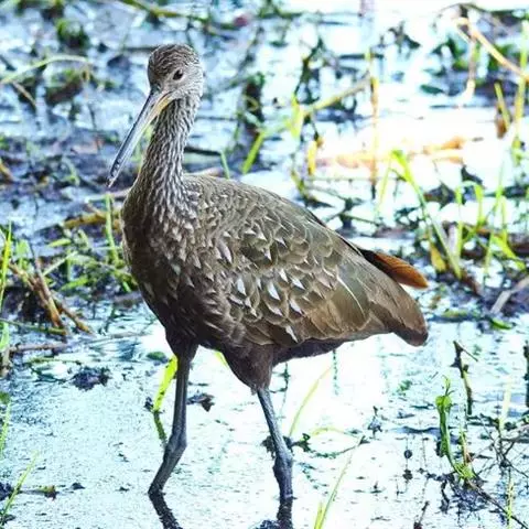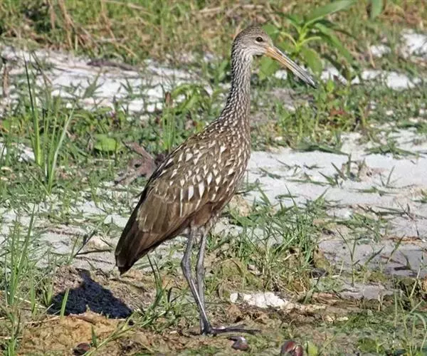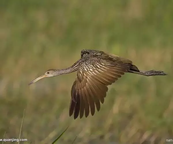 秧鹤(Aramus guarauna),秧鹤科(Aramidae),秧鹤科仅秧鹤一种,体型似鹤,但嘴长而侧扁下弯,后趾较长。秧鹤喜食螺类,栖息于美洲的热带水域和从美国佛罗里达到阿根廷北部的美洲热带、亚热带水域。