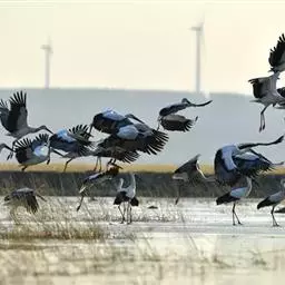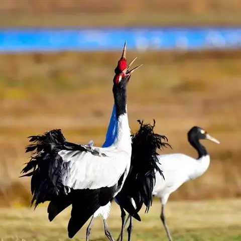 黑颈鹤:是鹤科、鹤属的大型涉禽,体长110-120厘米,体重4-6千克。颈、脚甚长,通体羽毛灰白色,…