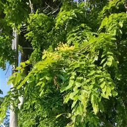 腊肠树:是豆科腊肠树属植物。落叶乔木,高可达15米;枝细长;树皮灰色,老时粗糙,暗褐色。…