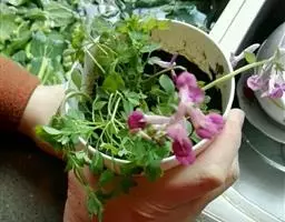 上花瓣长1.5-2厘米;距短囊状,约占花瓣全长的1/4;蜜腺体短,约占距长的1/3。下花瓣长约1.3厘米,瓣片与爪的过渡部分较狭。内花瓣长约1.2厘米,爪长于瓣片。雄蕊束披针形,具3条纵脉,上部渐尖成丝状。柱头横向伸出2臂,各枝顶端具3乳突。