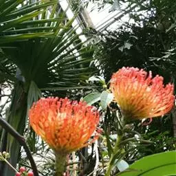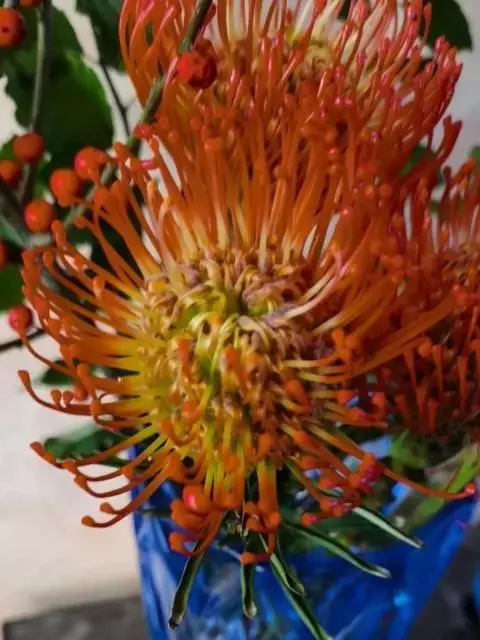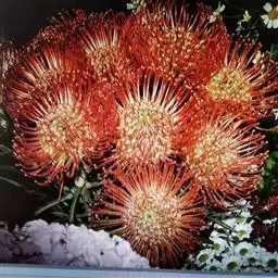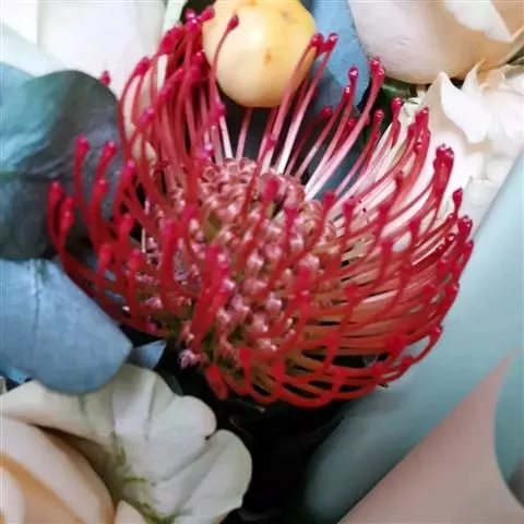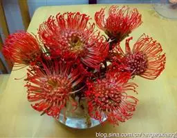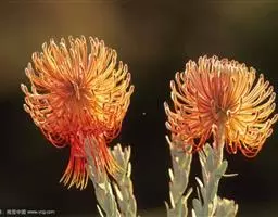 帝王花,山龙眼科帝王花属多年生常绿灌木植;茎干粗壮,叶色翠绿光亮;花朵呈圆球状;其苞片有的完全打开,…