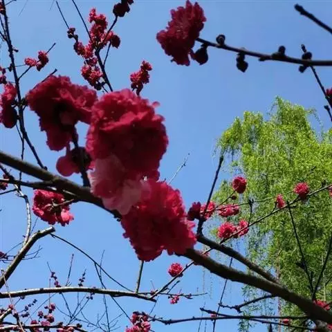 撒金碧桃 Voss)是李亚科,桃属植物桃的变种,叶为窄椭圆形至披针形,长15厘米,宽4厘米,先端成…