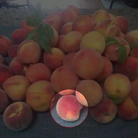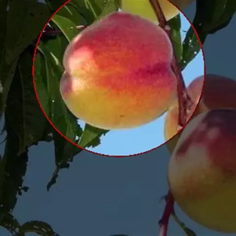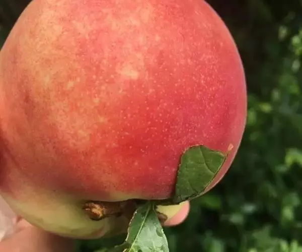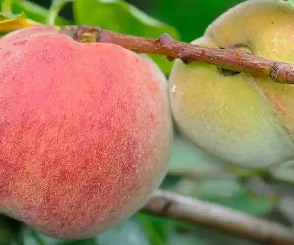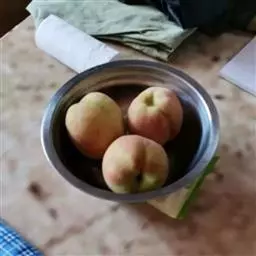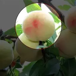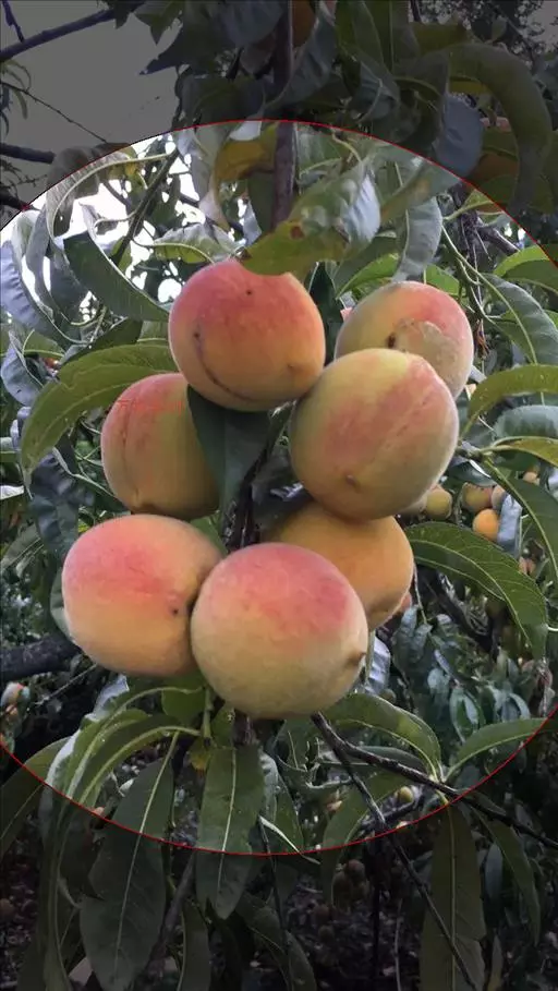 成熟的水蜜桃略呈球形,表面裹着一层细小的绒毛(这说明了毛桃和水蜜桃是一种的),青里泛白,白里透红。一个桃子一般重一百克到二百克,大的重三百多克。