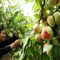 水蜜桃着果率高,必须进行疏果,控制留果量。疏果宜分2次进行,分别在4月下旬~5月上旬和5月中下旬,一般短果枝留1只果,中果枝留2只果,长果枝留3~5只果。定果后及时喷药套袋。果实采收期根据品种特性而定,以采收8成成熟果为宜。