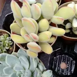 三色花月锦是景天科青锁龙属多肉植物,燕子掌的栽培品种,叶片有红、黄、白斑块,色彩斑斓。花期秋季。