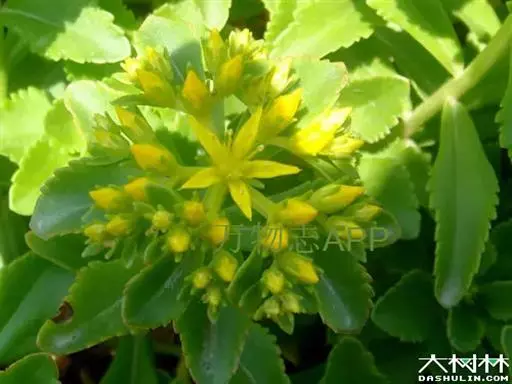 多年生肉质草本,无毛,高可达80厘米。根状茎粗厚,近木质化,地上茎直立,不分枝。叶互生,或近乎对生;广卵形至倒披针形,长5~8厘米,先端钝或稍尖,边缘具细齿,或近全缘,基部渐狭,光滑或略带乳头状粗糙。伞房状聚伞花序顶生;无柄或近乎无柄;萼片5,长短不一,长约为花瓣的1/2,线形至披针形,先端钝;花瓣5,黄色,长圆状披针形,先端具短尖;雄蕊10,较花瓣短;心皮,略开展,基部稍稍相连。蓇葖果5枚成星芒状排列。种子平滑,边缘具窄翼,顶端较宽。 花期6~8月,果期8~9月。 [2-3]