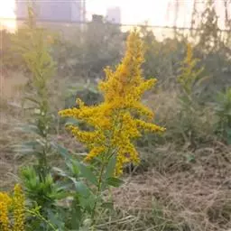 加拿大一枝黄花(学名:Solidago canadensis L.):是桔梗目菊科的植物,又名黄莺、麒麟草。多年生草本植物,有长根状茎。茎直立,高达2.5米。叶披针形或线状披针形,长5-12厘米。头状花序很小,长4-6毫米,在花序分枝上单面着生,多数弯曲的花序分枝与单面着生的头状花序,形成开展的圆锥状花序。总苞片线状披针形,长3-4毫米。边缘舌状花很短。