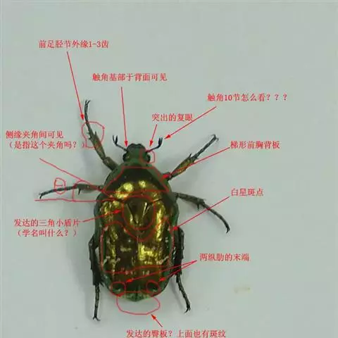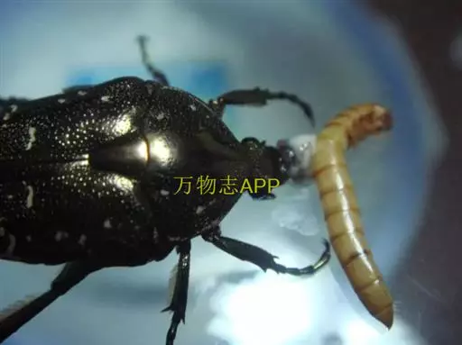 幼虫:老熟幼虫体长约24~39mm,头部褐色,胸足3对,短小,腹部乳白色,肛腹片上的刺毛呈倒“U”字形2纵行排列,每行刺毛数为19~22根,体向腹面弯曲呈C字形,背面隆起多横皱纹,头较小,胴部粗胖,黄白或乳白色。