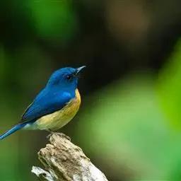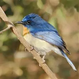 山蓝仙鹟:小型鸟类,体长13-15厘米。雄鸟额基和眼先黑色,颏橙棕色,仅颏尖为蓝黑色,…