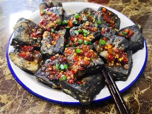菜豆腐 长沙人称臭干子,特点:焦脆而不糊、细嫩而不腻、初闻臭气扑鼻,细嗅浓香诱人,具有白豆腐的新鲜爽口,油炸豆腐的芳香松脆。