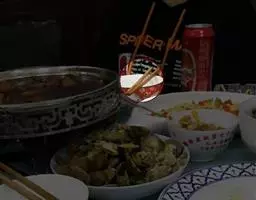 材料:臭豆腐四块,酸菜二片,大豆芽四两,冬菇六只,红辣椒一只,芫茜适量。