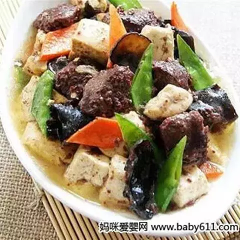 做法:臭豆腐洗净,切成小块,漓 干水分。毛豆剥壳去衣。油锅烧热, 将臭豆腐下锅炸至金黄捞起。锅内 留少量油,烧至八成热,下毛豆翻 炒至熟,再将臭豆腐倒入加少许水, 加盐、味精,待汤汁收干后装盘即可。