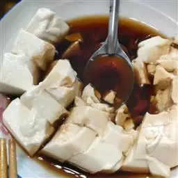 (2)油炸臭豆腐将青矾放入桶内,春、秋季约需3~5个小时,夏季约浸泡6h左右,冬季约需2天,泡好后取出,用冷开水略洗,沥干水分,再将茶油全部倒入锅内烧红,放入豆腐用小火炸约5分钟,一待焦黄,即捞出放入盘内,用筷子在豆腐中间钻一个洞,将辣椒油、酱油、麻油倒在一起调匀,放在豆腐洞里即成。