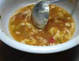 过桥豆腐是一道传统名肴,属于湘菜系。此菜柔滑细嫩,咸鲜适口,菜相美观,勾芡后,用小勺舀上一勺送入口中,…