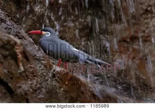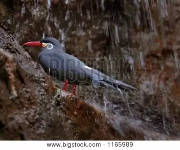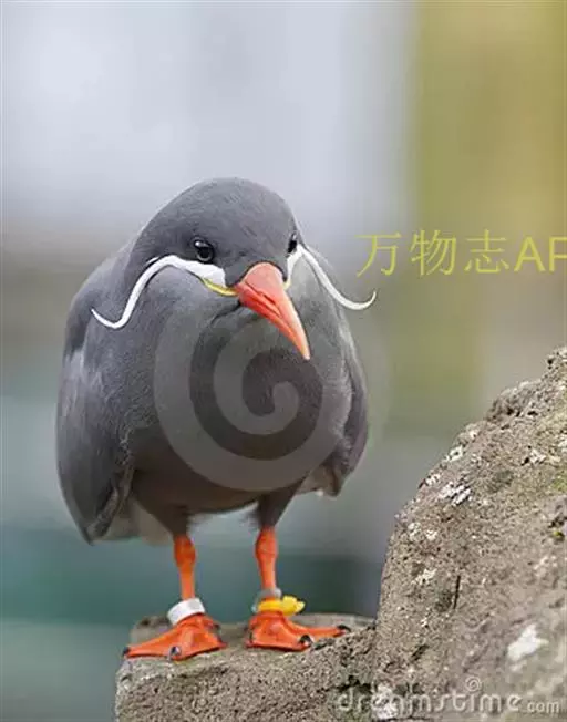 印加燕鸥体色深灰,体长 40 厘米左右,白色的卷曲触须突出在外。