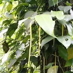 假蒟是胡椒科胡椒属多年生草本植物。小枝近直立,无毛或幼时被极细的粉状短柔毛;叶近膜质,有细腺点,…