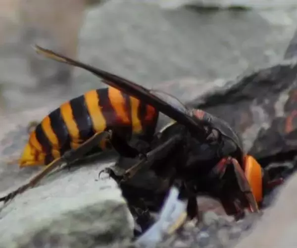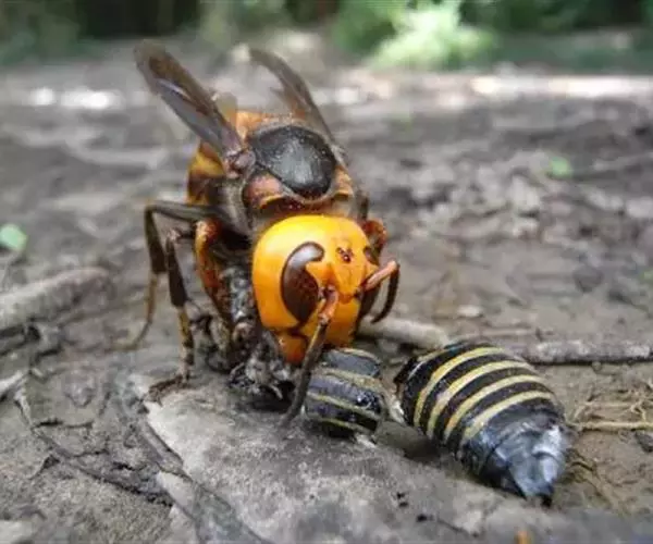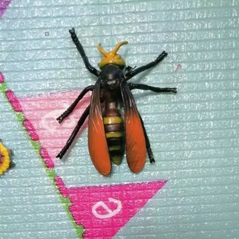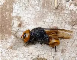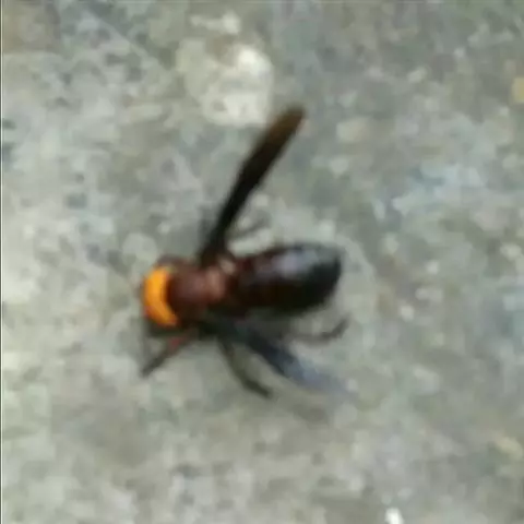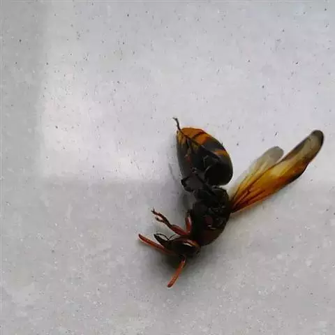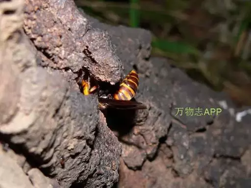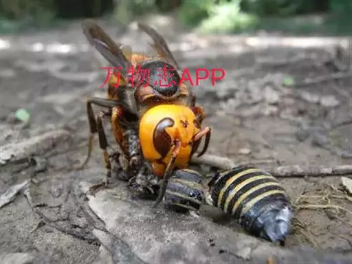 为膜翅目,胡蜂科。体长竟达40毫米,是世界上最大的胡蜂。头部:宽较胸部窄,但略宽于前胸背板前缘;胸部:前胸背板前缘中央略隆起,被中胸背板端部分开,肩角明显,前缘两侧黄棕色,其余均呈黑褐色,但有的个体肩角处各有1棕色斑,刻点几无,但布有棕色毛。腹部:除第6节背、腹板全呈橙黄色外,其余各节背板均为棕黄色与黑褐色相间。捕食多种昆虫,在生物防治上有较大利用价值,同时亦会吸食成熟水果,带来一定害处。属东洋、古北区系共有种。