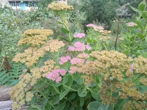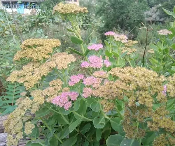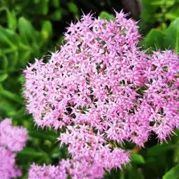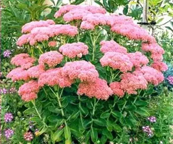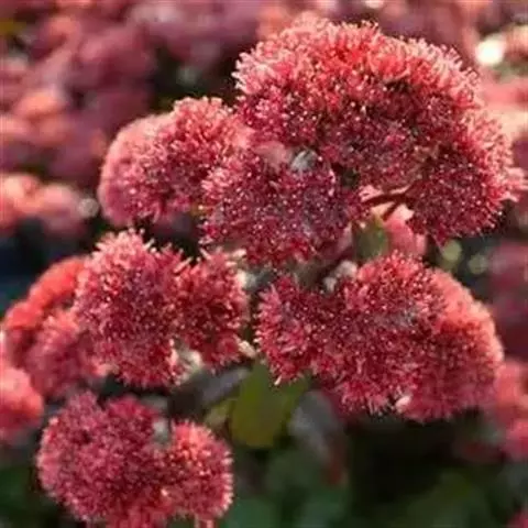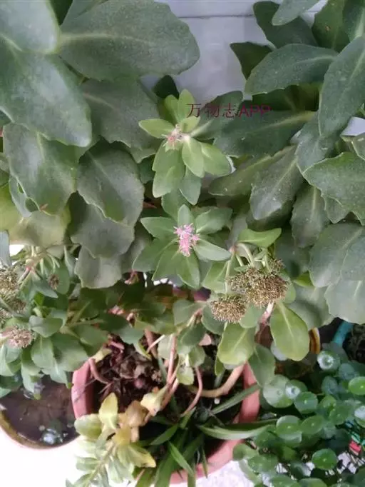是八宝属多年生肉质草本;常为倒卵形对生至轮生叶子;夏秋开淡红色花,花极茂盛成顶生伞房状聚伞花序,一部分雄蕊远较花瓣长。