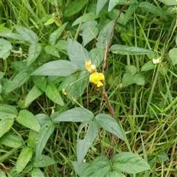 一年生草本。茎纤细,长达1米或过之,幼时被黄色长柔毛,老时无毛。羽状复叶具3小叶;托叶盾状着生,披针形或卵状披针形,长10-15毫米,两端渐尖;小托叶钻形,小叶纸质,卵形或披针形,长10-13厘米,宽(2-)5-7.5厘米,先端急尖,基部宽楔形或钝,全缘或微3裂,沿两面脉上薄被疏毛,有基出脉3条。总状花序腋生,短,有花2-3朵;苞片披针形;花梗短,着生处有腺体;花黄色,长约1.8厘米,宽约1.2厘米;龙骨瓣右侧具长角状附属体。荚果线状圆柱形,下垂,长6-10厘米,宽约5毫米,无毛,种子6-10颗,长椭圆形,通常暗红色,有时为褐色、黑色或草黄色,直径3-3.5毫米,种脐凹陷。花期5-8月。