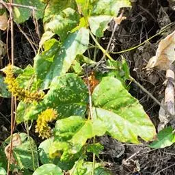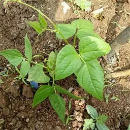 赤小豆植株 一年生半攀援草本。茎长可达1.8米,密被倒毛。托叶披针形或卵状披针形;小叶3枚,披针形、矩圆状披针形至卵状披针形,长6~10厘米,宽2~6厘米,全缘或具3浅裂,两面均无毛,仅叶脉上有疏毛,纸质,脉3出。
