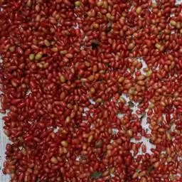 赤小豆上部和下部荚成熟不一致,有的品种易炸荚,不能等豆荚全部 赤小豆 成熟再收割。因子粒可后熟,故可在有2/3的豆荚变成灰黄色时即可收割。因红小豆结荚很低,只能人工收割,田间晾晒,割晒时每6条垄放一铺(放鱼鳞铺),铺下不能有未割的红小豆,在田间晒2~3天,待豆荚成熟,子粒变成固有形状和颜色,水分16~17%时,选择早晚、最好是阴天或刚下过小雨后进行机械脱粒。